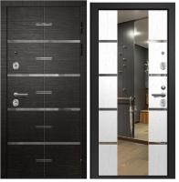 | Дверь мет. ОРФЕЙ-600 Сатин черный,Венге гор. с молд, Лиственница камчатская, зеркало (2050*960, правая, хром)