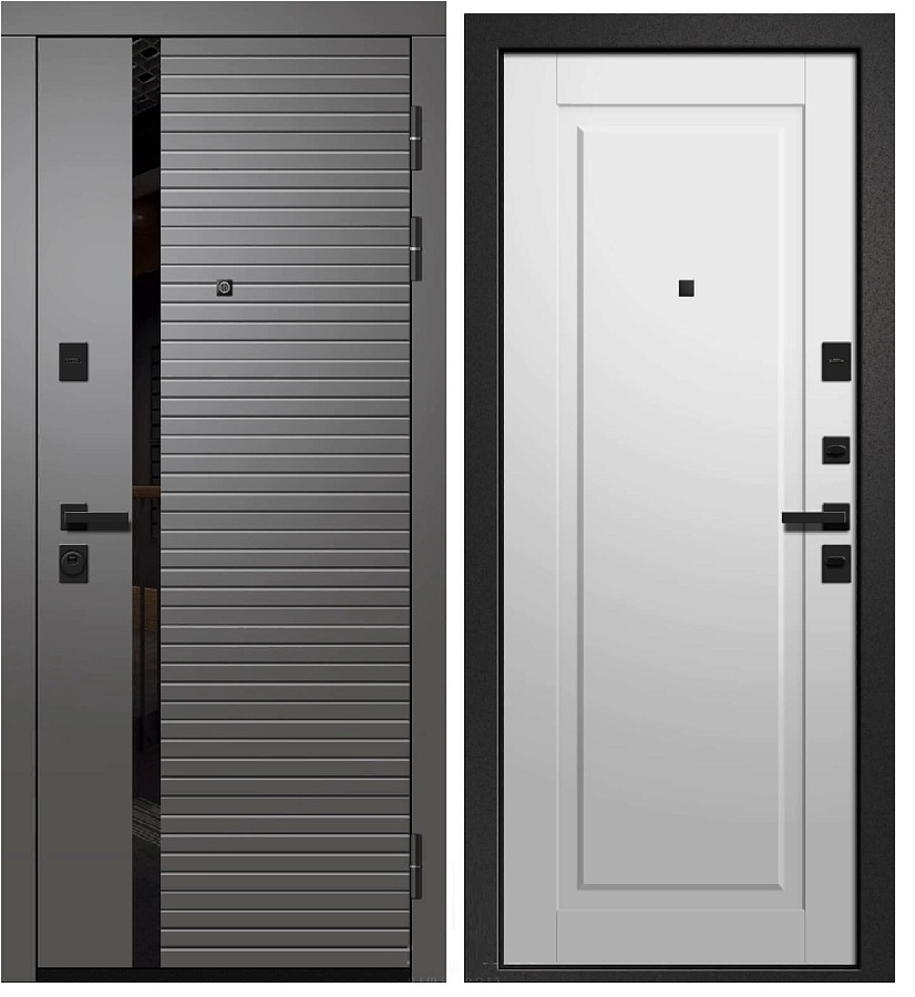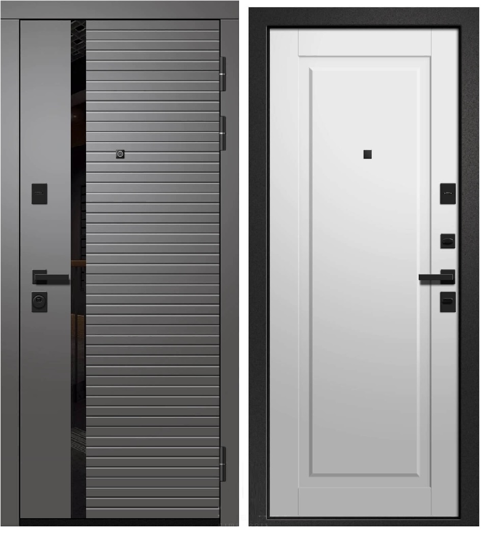 Дверь мет. ОРФЕЙ-615  Софт графит 286 черный лак/ Софт айс ЭРМИТАЖ-7  (2050*860, R, правая, черн.фурн)