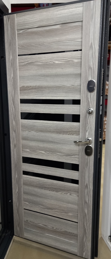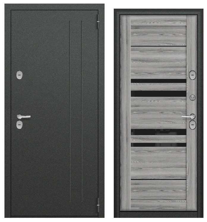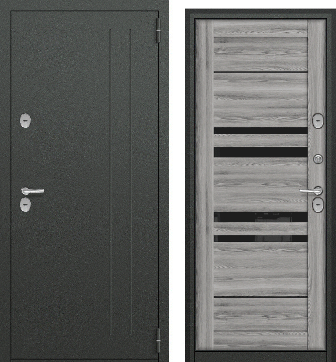 Дверь металл Термобокс СИП ( букле графит / МДФ ясень ривьера грей )
