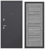Дверь мет. Агрия Царга 16мм, шагрень 7024, МДФ клен грей, черное стекло (2050*860, правая)