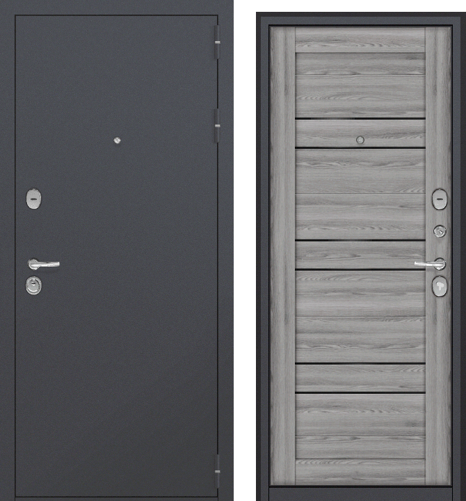 Внешняя сторона - металл, цвет покрытия - шагрень цвета RAL 7024