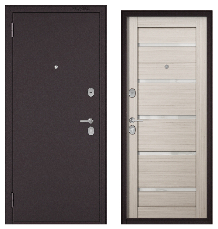 ФЭМЕЛИ ЭКО, МДФ ларче бьянко СР-142 лакобель белое, 2 замка (2050*860, правая, букле шоколад, хром)