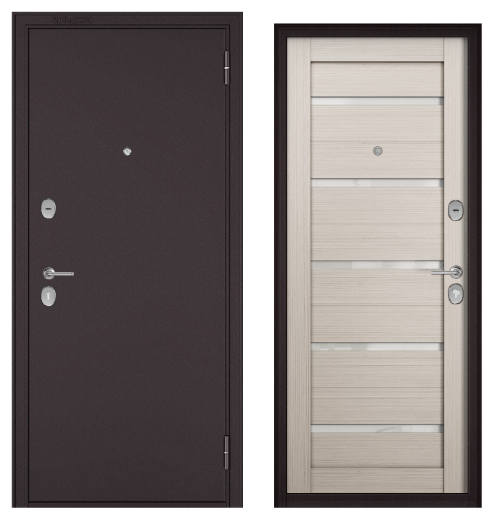 ФЭМЕЛИ ЭКО, МДФ ларче бьянко СР-142 лакобель белое, 2 замка (2050*960, правая, букле шоколад, хром)