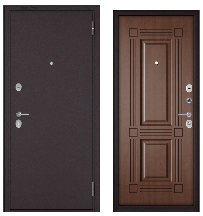 Бульдорс ФЭМЕЛИ ЭКО, МДФ карамель E-104, 2 замка (2050*860, правая, Ночная задвижка, букле шоколад, хром)