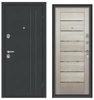 Тульские двери Б31 СЕУЛ Букле графит, Дуб дымчатый ,Царга, черное стекло,три контура, хром (2050*960, правая)