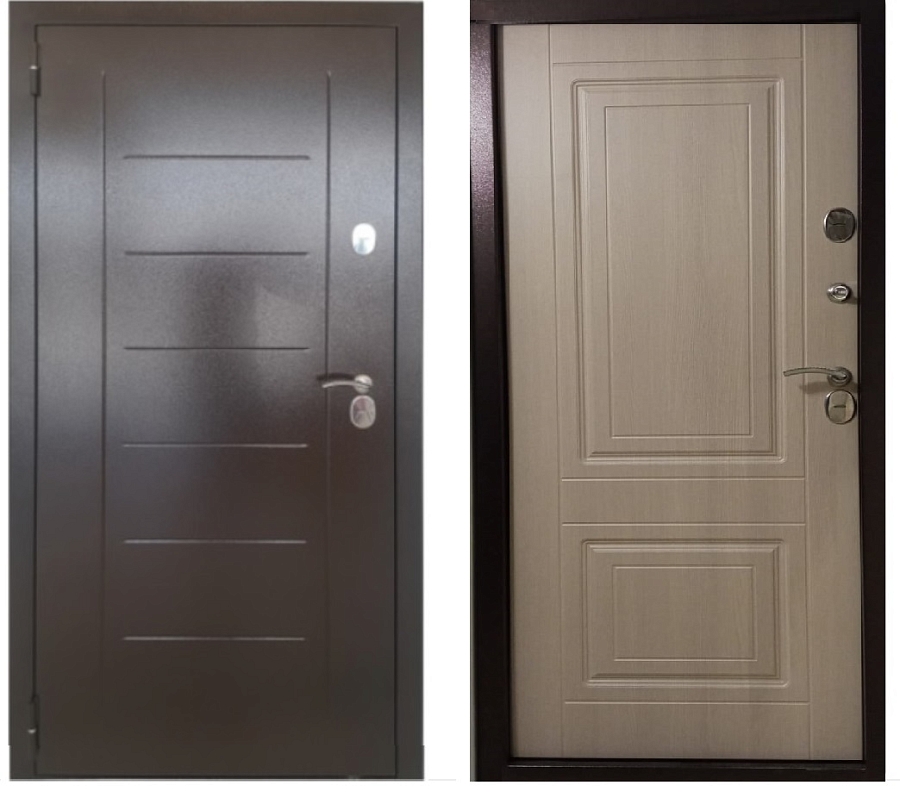 Тульские двери Б35 Термо СИП (медь, тиснение лесенка, МДФ 12мм дуб эко, 2петли, 1.2мм, хром) (2050*860, левая)