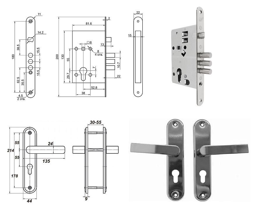 Замок врезной ПРОСАМ ЗВ4/31.55 (замок+ ручки ХРОМ)