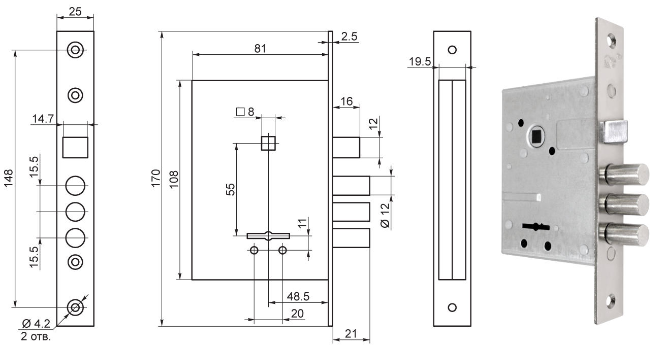 Замок Border ЗВ9-8/13 (Просам)(сувальдный замок)