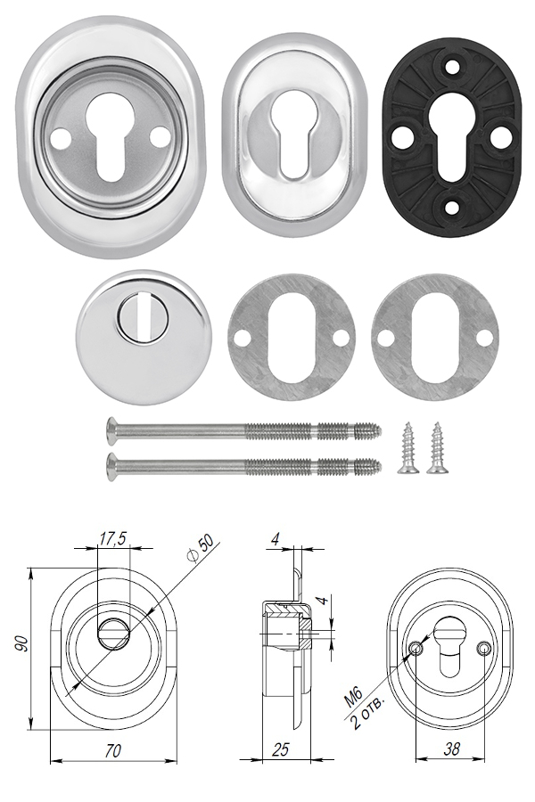 В комплект входят проставочные кольца, стяжные винты М6х90 мм, крепеж и ответная часть.
