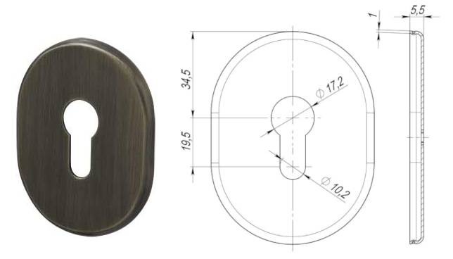 Декоративная накладка ESC.C.SF/OV.473 AB цилиндровая (зеленая бронза)