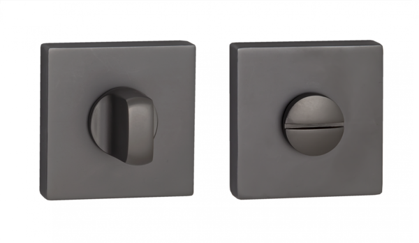 Завертка выполнена в стилистике дверных ручек, имеет тот же цвет, аналогичную форму розетки и снабжена удобным поворотным вертушком.