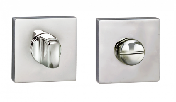 Завертка выполнена в стилистике дверных ручек, имеет тот же цвет, аналогичную форму розетки и снабжена удобным поворотным вертушком.