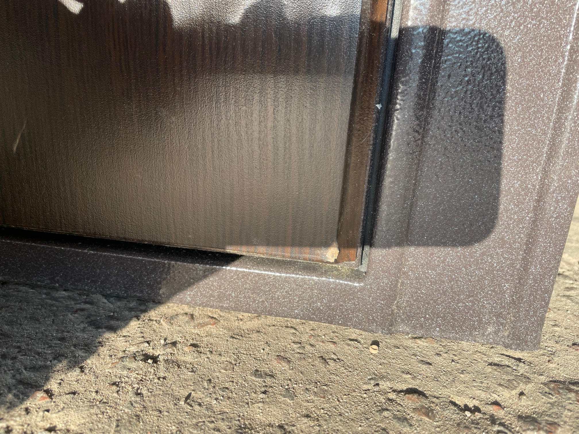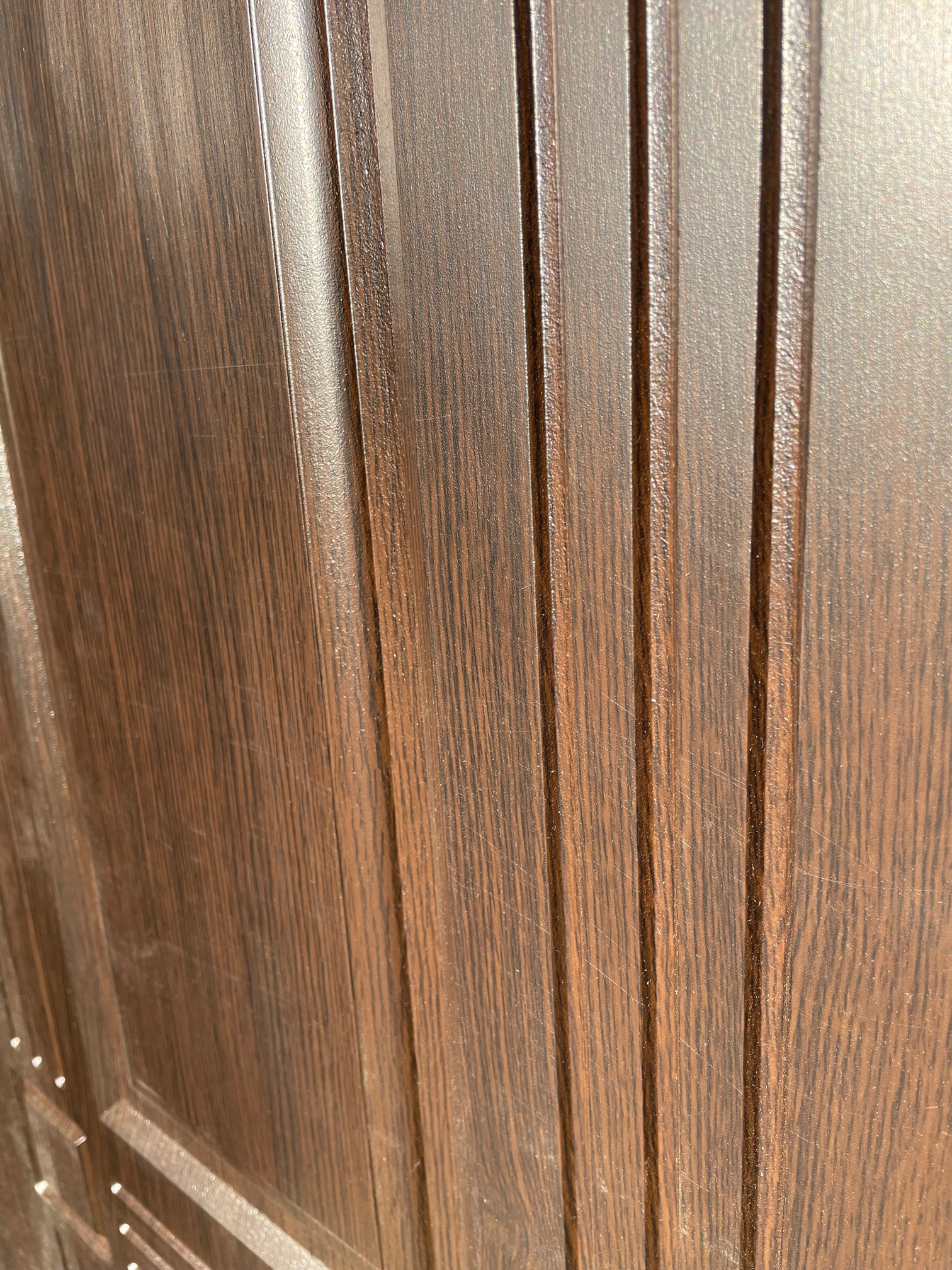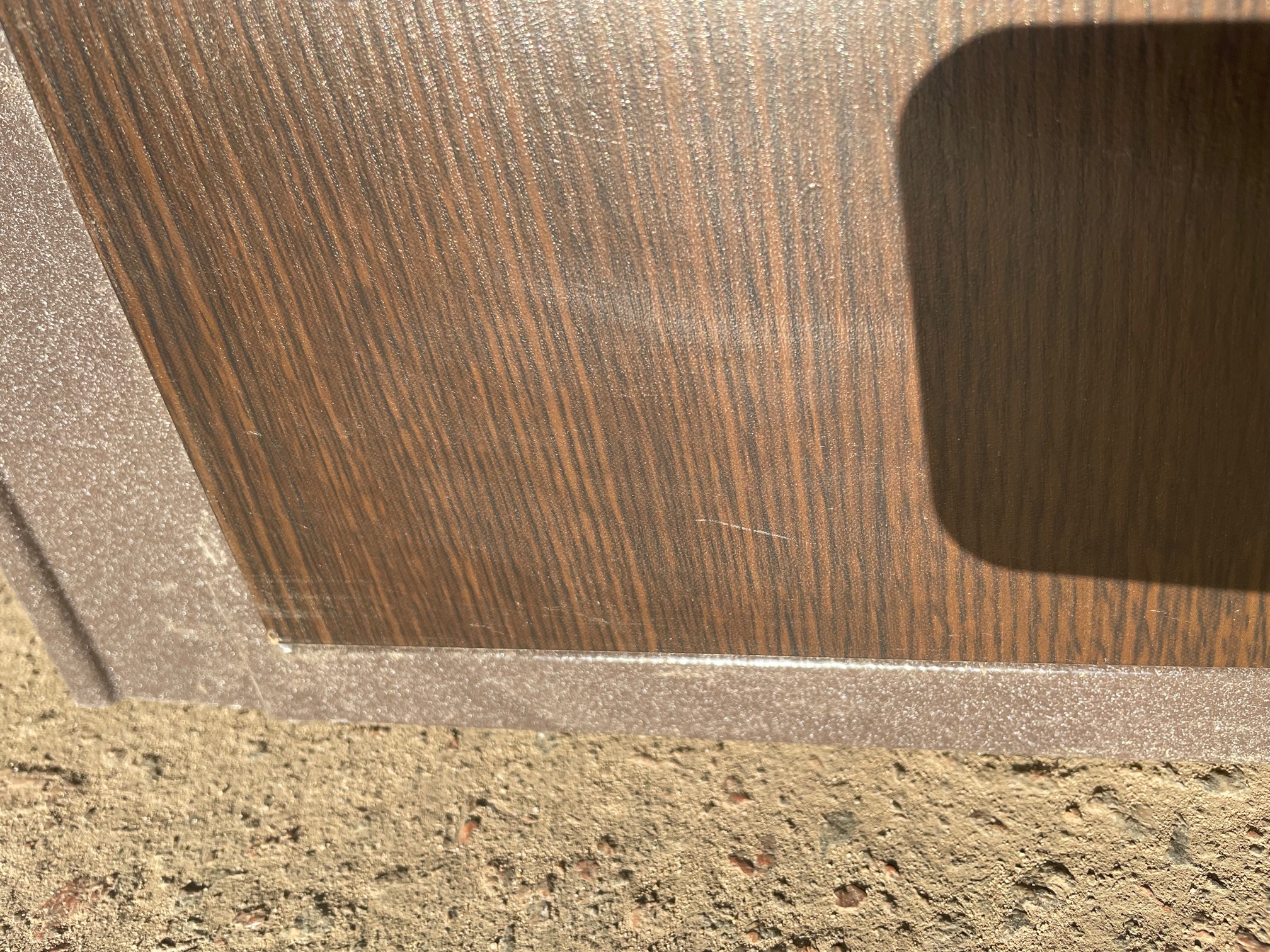 скол на МДФ панели с наружней стороны в нижней части