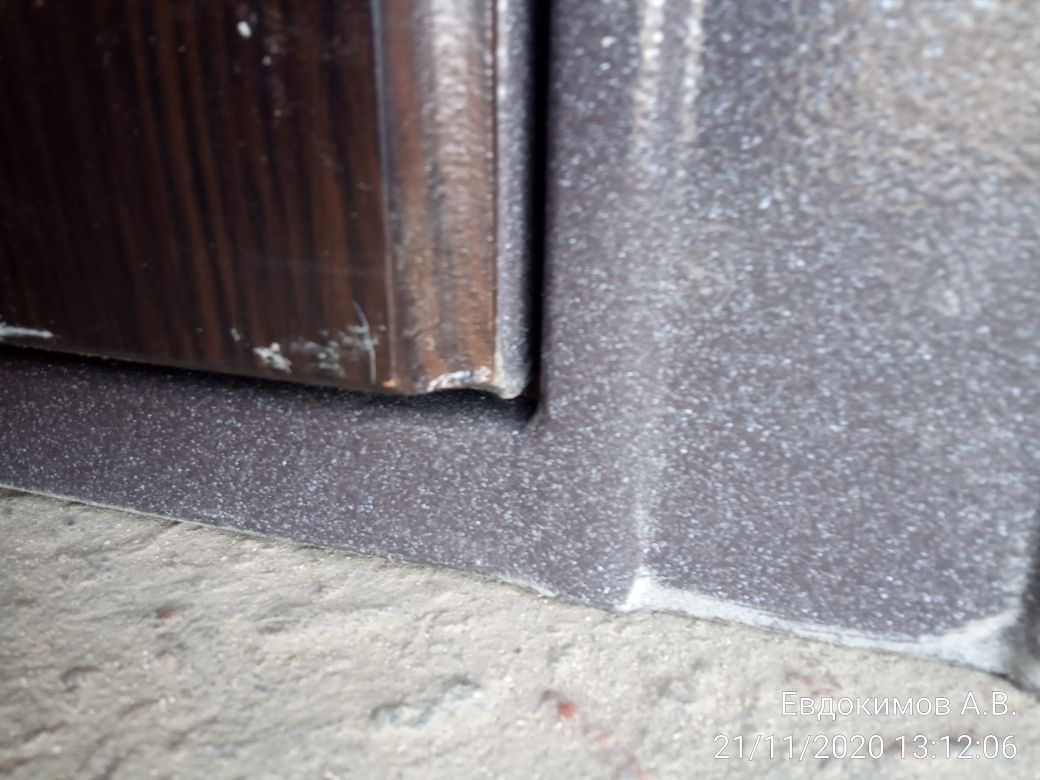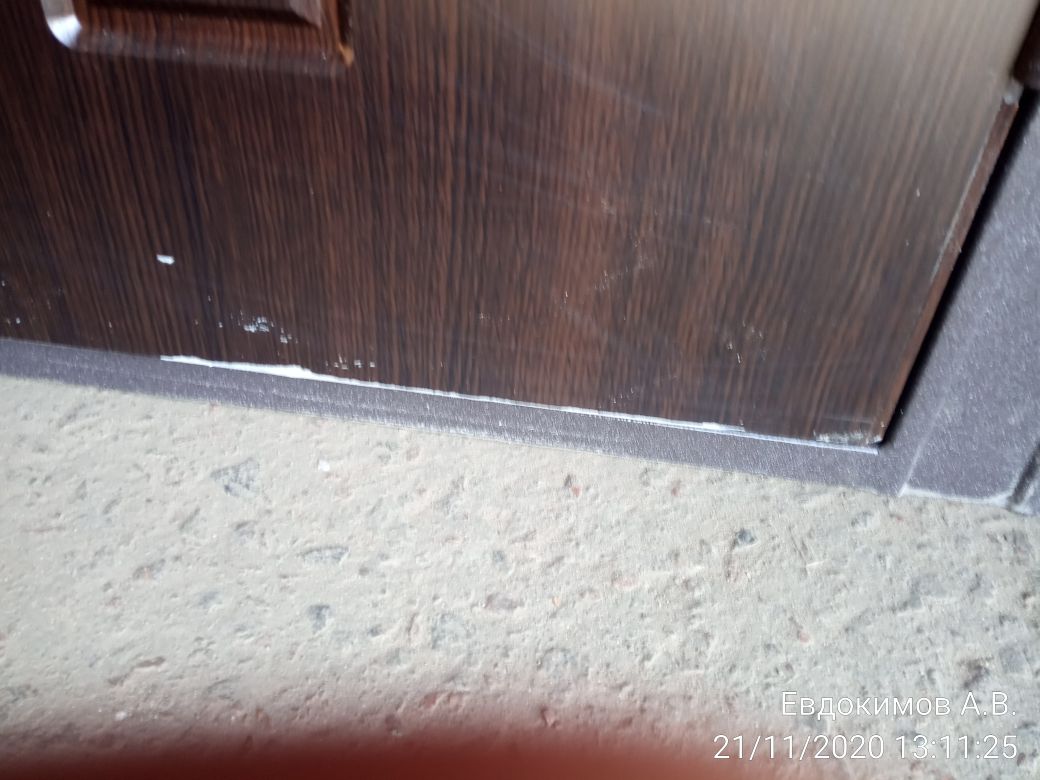 скол на мдф в нижней части с наружней стороны двери + царапины
